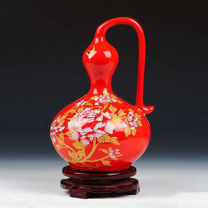 Jingdezhen gourd shape red ceramic vase with peony pattern