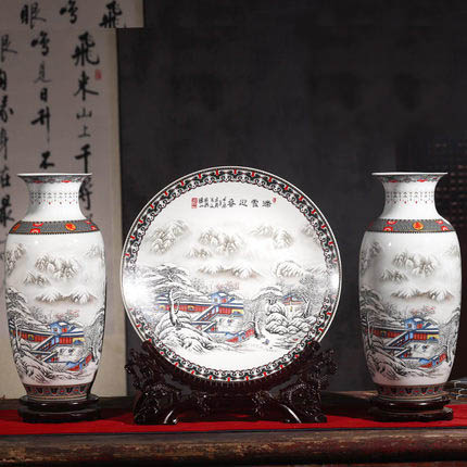 Jingdezhen big snow scenery ceramic vase three-piece set made in china