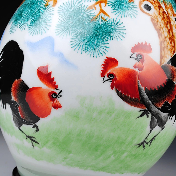 Designer hand painted ceramic vase decoration with roosters home decor