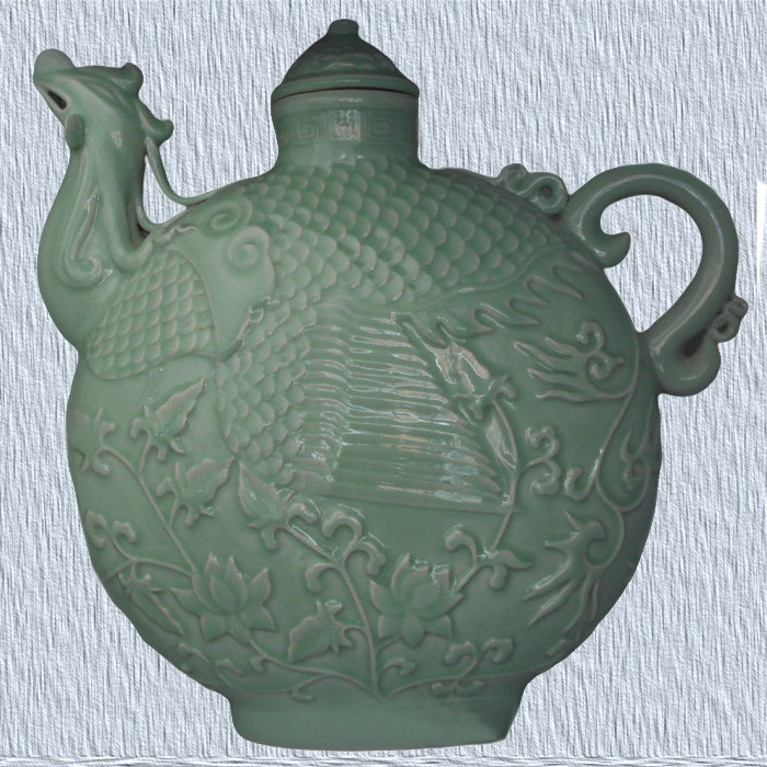 Vintage extra large crested celadon porcelain flat jugs and vases