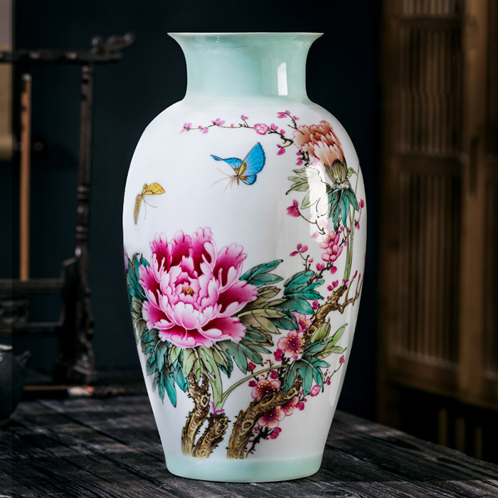 Designer hand-painted chinese ceramic vase with butterfly and flower