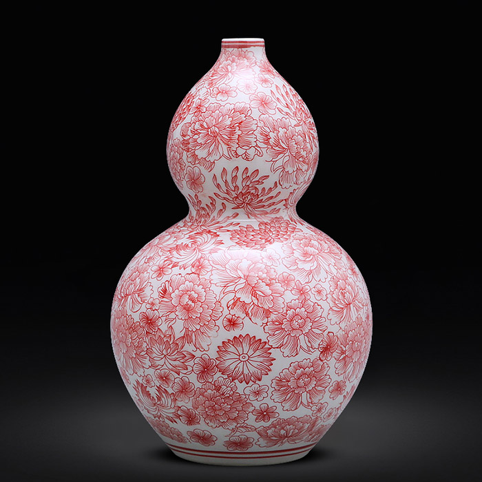 Red trendy gourd shape flower ceramic antique vase and ornament