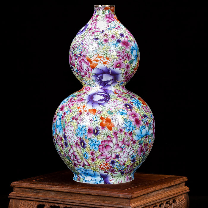 Vintage Qing dynasty gourd shape multi-flowers pattern ceramic vase
