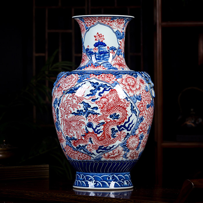 Designer Hand-painted blue and white enamel red dragon pattern vase