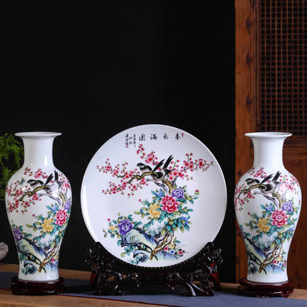 Chinese big spring scenery ceramic vases and ornaments three-piece set