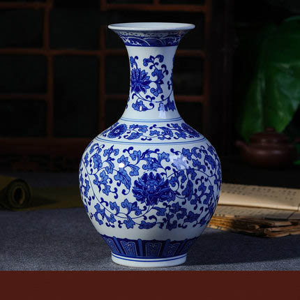 Jingdezhen ceramic blue and white porcelain view vase tangled lotus